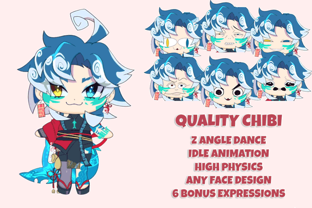 Kickable Live2D Chibi VTuber models range from $250-550 USD depending on complexity and the amount of custom expressions requested.